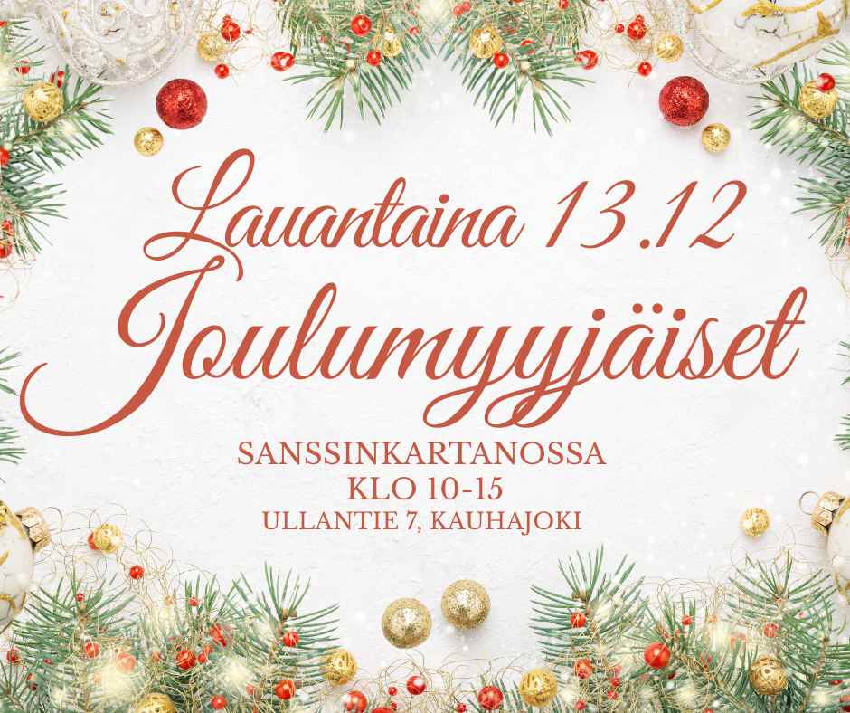 Perinteiset joulumyyjäiset lauantaina 13.12.2025 klo 10-15. Tervetuloa koko perheen voimin. Luvassa joulutunnelmaa sylin täydeltä.